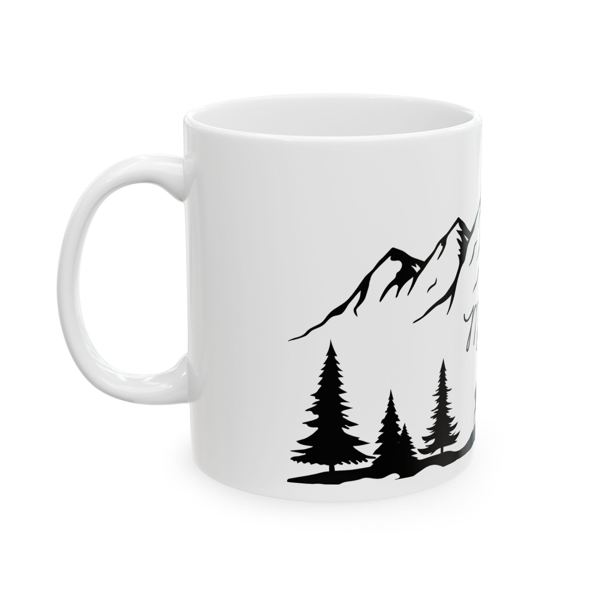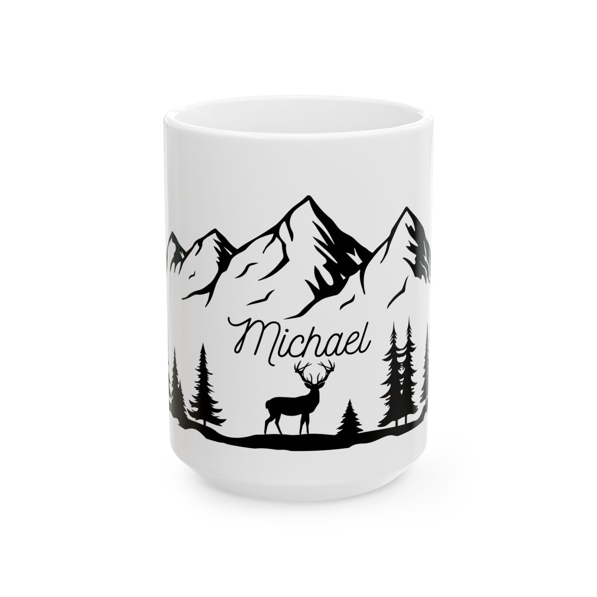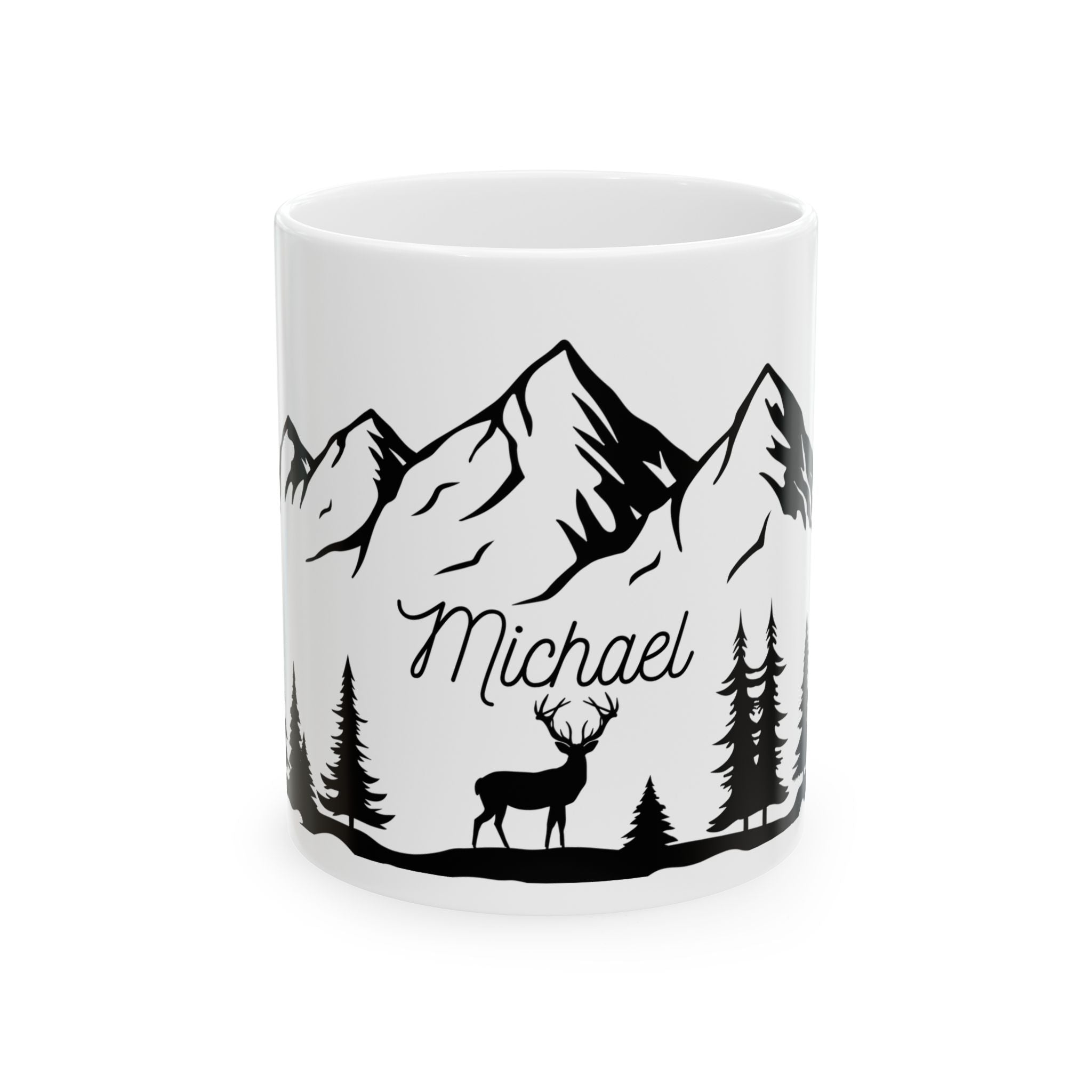 Artfully designed ceramic mugs, personalized with names, places, and nature-inspired illustrations.