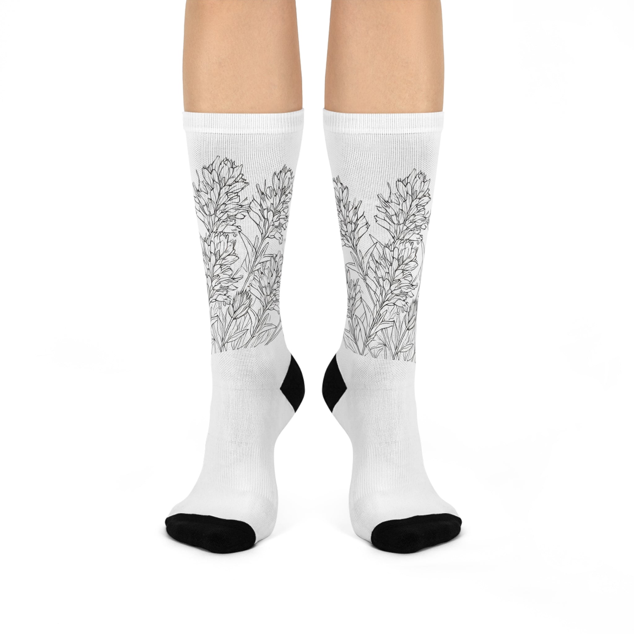 These Indian Paintbrush Minimalist Wildflower Socks bring a touch of nature and simplicity to your wardrobe. The vibrant colors and all-over print make them perfect for adding a pop of color to any outfit. Whether you're lounging at home, running errands, or heading to a special event, these cushioned crew socks will keep you comfortable and stylish. Ideal for nature lovers, gardeners, and those who appreciate minimalist design. Perfect for gifting on birthdays, Mother's Day, or just to brighten someone's day.