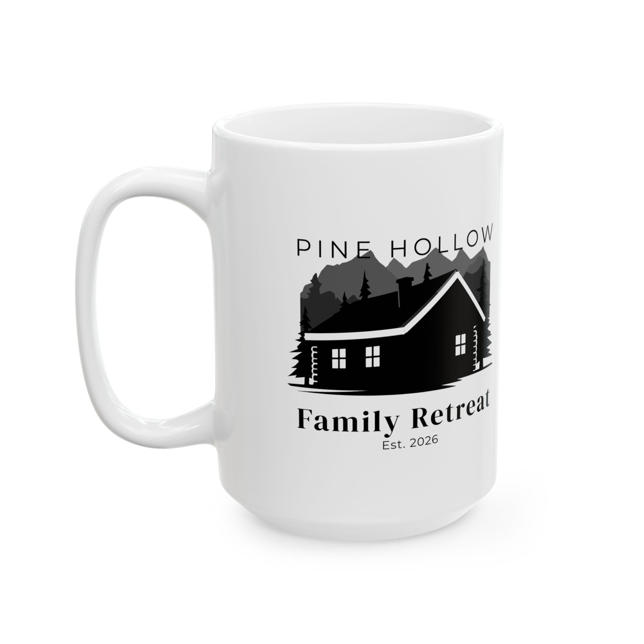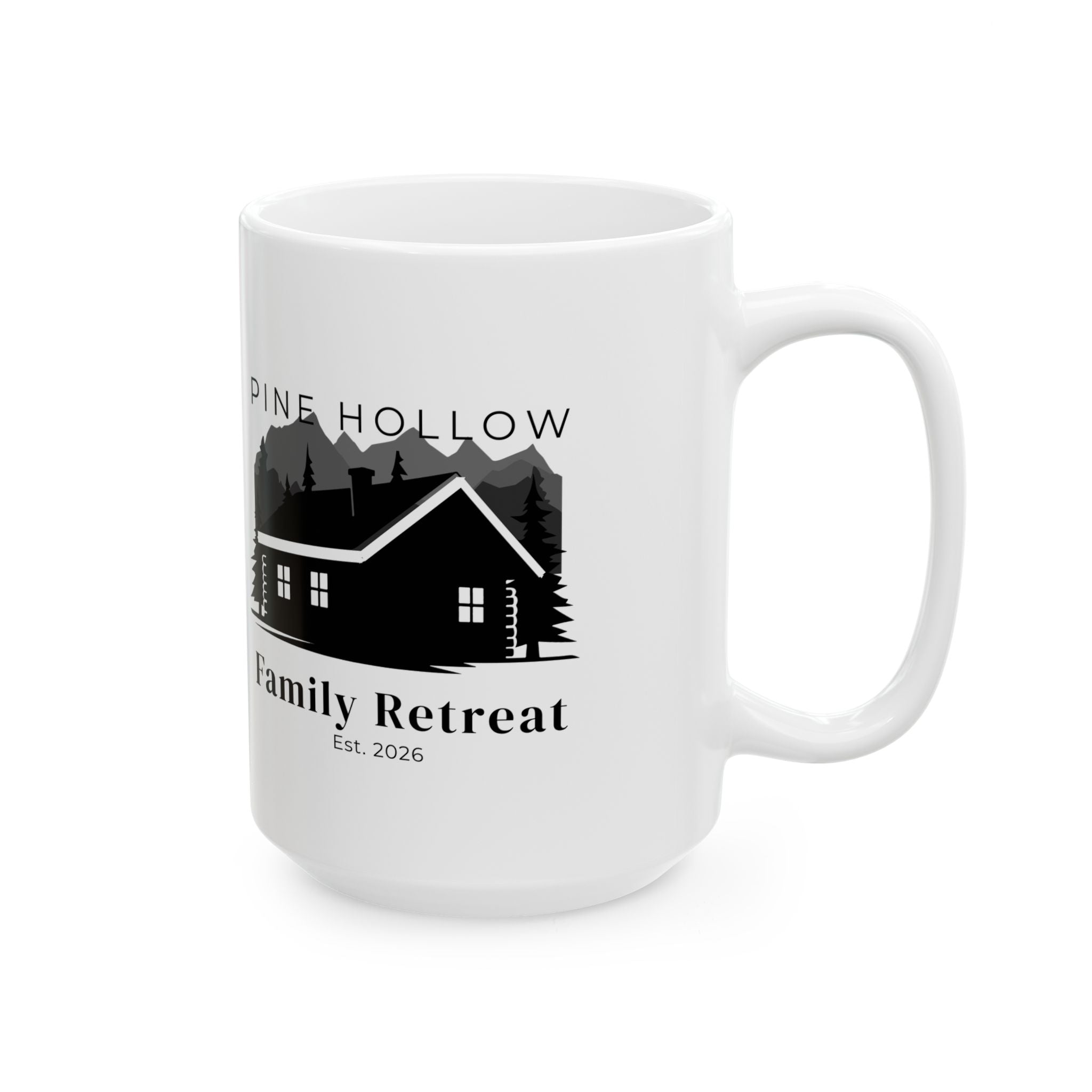 This glossy ceramic mug brings a quiet, cabin-side calm to your morning routine. Clean black-and-white lodge illustrations wrap gently around the white surface, evoking pine-scented air, crackling fires, and slow weekend mornings. Lightweight enough for daily use, the comfortable C-handle and bright print make it easy to reach for this mug when you want a moment of grounding. Choose 11oz for a single cozy cup or 15oz when you need a little extra warmth. Lead- and BPA-free, microwave- and dishwasher-safe, it’s built to be used — and loved — every day.