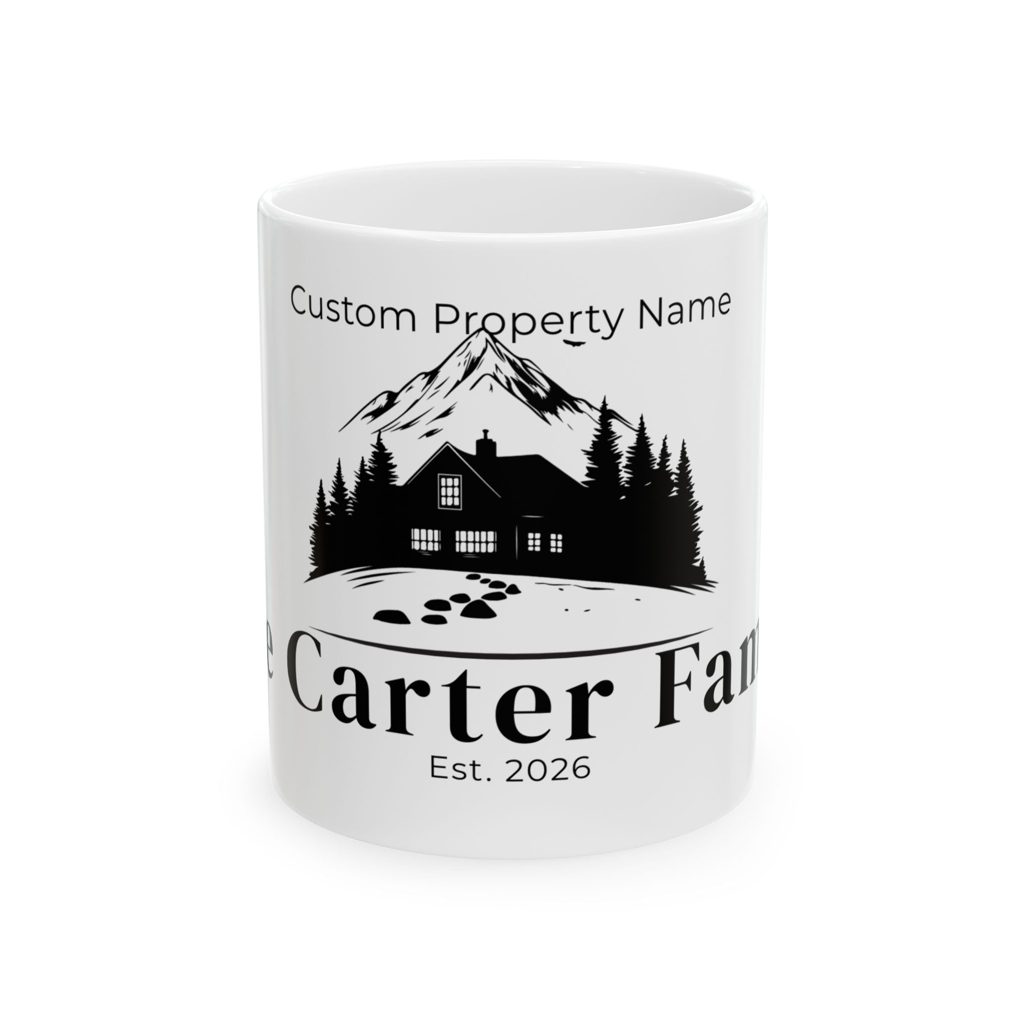 Personalized Lake House Mug | Custom Lake Dock, Family Name Cottage Mug